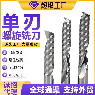 硬霸3A單刃螺旋銑刀4/5/6/8鎢鋼合金雕刻機刀具亞克力p vc單刃銑刀
